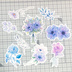 やさしい雰囲気の寒色系の花や葉が9枚、全て柄違いで入っています。