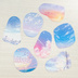 ゆるっとした形に水彩画やアクリル画の空を切り抜きました