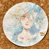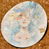Silent Luck vifart水彩紙中目(クリームがかった紙色です。) 用紙サイズ 直径8.8cm(豆色紙と同じくらいのサイズです。) pigma 0.03(セピア)、絵墨(明)、顔彩(ナカガワ胡粉)、漫画ライナー金・銀、白えのぐ (全て顔料インク使用) 初出: 「白の祝福」2026年3月27日〜4月5日ギャラリーアートスープにて
