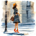 【商用利用可】ファッションガール街歩き(水彩ストリートスタイル)クリップアート20点セット|高解像度JPG|おしゃれ人物・コラージュ・ジャンクジャーナル素材|即ダウンロード