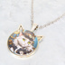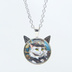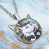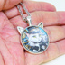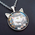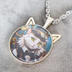 シルバーカラー 猫耳カボションペンダントネックレス スチームパンク シルクハットの毛長白猫 長さ調整可
