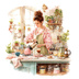 【商用利用可】リラックスする女の子(水彩リラックスガール)クリップアート37点セット|高解像度・透過PNG|癒し・おうち時間・コラージュ・ジャンクジャーナル素材|即ダウンロード