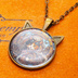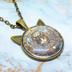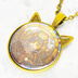 アンティークゴールド 猫耳カボションペンダントネックレス スチームパンク 三毛猫パイロット 長さ調整可