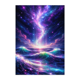 ポスター - B2この商品はpixivFACTORYで作られた商品です。サンプル画像は完成イメージのため、実物と異なる場合があります。 星空と海がひとつに溶け合う、幻想的なコズミックオーシャン。 波の一つひとつに光が宿り、空へと伸びる光の流れが壮大なスケールを感じさせます。 ネオンカラーと宇宙的な輝きが融合したこの作品は、見る人を非現実の世界へと引き込む没入感を持っています。 幻想的でありながら力強いエネルギーを感じられる一枚です。