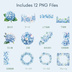 【透明感水彩】ブルー紫陽花クリップアート|12PNG・背景透過|ウェディング・デザイン素材