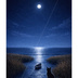 【iPhone壁紙】青い夜|月へ続く海と猫|Aoya Blue Night No.25 – Moonlit Shore with Cat