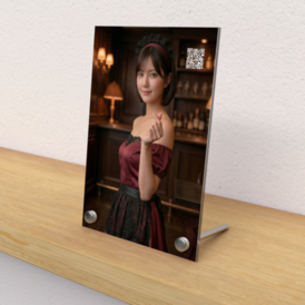 アクリルフォトパネル - 縦100 × 148mm『聴くアクスタ』玲菜 Vol.2 〜真夜中のボルドー、氷の溶ける音〜 「……今夜の温度は27度。少し火照った身体を、芳醇な音色で癒やしませんか?」 大好評の【聴くアクスタ】シリーズ通算第6弾は、ミステリアスな魅力あふれるメイド・Reina(レイナ)のセカンド・エディション。 今回の舞台は、夏の熱気が残る深夜のジャズ・バー。深いボルドーのドレスに身を包んだ彼女が、あなたを最高に贅沢な「夜」へと誘います。 🍷 プレミアム・トータルタイム:13分22秒 Reinaが贈る、サックスと囁きの没入型プログラム。 💿 収録内容 Opening Voice (0:00〜) 「おかえりなさい。……ふふ、今夜は少し熱がこもっていますね。」 氷がカランと鳴る音と共に始まる、Reinaの少し情熱的なお出迎え。ボルドーの衣装に合わせた、Vol.1より一歩踏み込んだ彼女の「本音」を受け取ってください。 Main BGM:Midnight Sax Session -Vintage Red- 27度の夜に溶け込む、本格的なサックス・ジャズ・セレクション。 13分22秒にわたる艶やかな旋律が、あなたの部屋を都会の隠れ家バーへと変貌させ、深いリラックスをもたらします。 Ending Voice (〜13:22) 「まだ寝かせないわよ?……今夜のセッションは、これからなんだから。」 夢の余韻の中で、彼女が優しく寄り添います。大人の余裕と、指ハートに込めた彼女の真心を最後までお楽しみください。 ✨ こだわりポイント 視線が重なるサイドビュー: Vol.1のミステリアスな「背中」から一転、今作は彼女と目が合うアイコンタクト。指で作られた小さなハートと柔らかな微笑みに、思わず視線を奪われます。 ボルドー×黒レースの誘惑: 熟成されたワインのようなシルクサテンと、透け感のある黒レース。そして彼女の代名詞「バックシーム・ストッキング」も夏仕様の薄手を採用し、大人の色香を追求しました。 実用的なリフレッシュ・タイム: 13分22秒という絶妙な尺は、一日の終わりのナイトキャップや、静かに集中したい夜の作業用BGMとしても最適です。 📦 商品仕様・ご注意 音声視聴方法: アクリルパネル本体の**【右上】**にある二次元コードをスキャンしてください。(ストリーミング形式) サイズ: 縦100 × 横148mm ⚠️ 注意事項: 本商品はpixivFACTORYで作られた商品です。サンプル画像は完成イメージのため、実物と異なる場合があります。 玲菜が案内する「ボルドー・ナイト」で、氷が溶けるまで、心ゆくまで酔いしれてみませんか?
