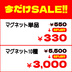 販売開始を記念して、まとめ買いが断然お得な最大46%OFFセールを実施中です! ・マグネット単品:通常価格 ¥550 → SALE価格 ¥330(税込) ・マグネット10種セット:通常価格 ¥5,500 → SALE価格 ¥3,000(税込) ・サンプルマグネット単品:通常価格 ¥440 → SALE価格 ¥165(税込) ※本セールは期間限定です。予告なく突然終了する場合や、価格が変更となる場合がございます。 在庫がなくなり次第終了となりますので、お早めにお買い求めください。