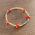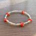 内周 : 15 cm 素材 : ヴィンテージビーズ / 淡水パール / ゴム チェリーを思わせる赤いヴィンテージビーズをあしらったブレスレットです。 みずみずしい果実のような赤と、淡く澄んだブルーが溶け合い、初夏の空気を感じさせる爽やかな色合いに仕上げました。 淡水パールを添え、やわらかな上品さをプラス。 春から夏にかけての装いに、軽やかなアクセントとしてお楽しみください。 【コンディション】 ヴィンテージビーズには、小さな傷や汚れが見られる場合がございます。あらかじめご了承ください。 *撮影時には可能な限り実際の色味を再現するよう努めておりますが、完璧ではない場合がございますことをご了承ください。 *返品はお受けできません。 *納品書、領収書は発行いたしません。
