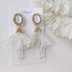 2way ふんわりチャーム付き白カボションピアス/イヤリング