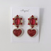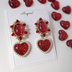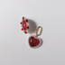 2way ハートチャーム付き赤カボションピアス/イヤリング