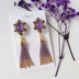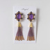 2way ビーズタッセルチャーム付き紫カボションピアス/イヤリング