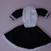 ご覧いただきありがとうございます! DDdyサイズのドール服「クラシカルバニーメイド服 5点セットとなります」 ・ワンピース型クラシカルメイド服 ・うさ耳カチューシャ ・エプロン ・リボン ・カフス(両手首分) 色は黒を基調とし、全体的にレースを付けてクラシカルでかわいくく仕上げております。 上半身の生地ですが、少し透けやすい生地となりますので、下着やキャミソールをインナーとして着させてあげるとよいと思われます。 また、スカートは裏地にもこだわっており、豪華なデザインの記事を裏地に使っております。 長袖タイプ3着、半袖タイプ2着の限定販売となります。 今後、同型の色違いや一部仕様変更を行ったものの販売の可能性はありますが、全くの同型・同色は今回の5着限定となります。 サイズに関しては、DDdyドールを元に制作しておりますため、他のサイズ・メーカーの同サイズドールとの互換性については補償いたしかねますので、予めご了承ください。 また、個人製作品であることも予めご了承ください。 ※撮影用に市販のキャミソール・ソックス・靴を使用しておりますが、それらは付属いたしません。