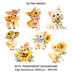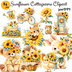 ひまわりコテージコア クリップアートバンドル|84点 水彩 PNG 透過背景|かわいい動物&花イラスト素材