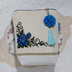 青い薔薇のワンポイント刺繍と薔薇のつまみ細工を施したクロスステッチポーチです。 やさしいブルーの色合いでまとめつつ、落ち着いた雰囲気の中にさりげない可愛らしさを感じられるデザインに仕上げました。内布にもこだわり、開けたときにも楽しんでいただけるよう仕上げました。 刺繍のデザインもオリジナルのものとなっております。 普段使いの小物入れとしてはもちろん、ギフトとしてもおすすめです。 刺繍だけでなく、縫製もすべて手縫いで仕上げています。 ひと針ひと針丁寧に制作した、手仕事ならではのやさしい風合いをお楽しみください。 【サイズ】 横:約15cm 縦:約17cm マチ:約5cm ※使用している布地の特性上、繊維の色味や風合いにより、汚れのように見える部分がある場合がございますが、元々の素材によるものです。 一点一点、手作業で制作しているため、個体差も含めてお楽しみいただけます。