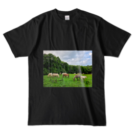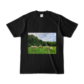 カラーTシャツ - XL - ブラック (濃色)北海道和種馬ってご存知ですか? 世界に1000頭しかいない、絶滅しそうになっている日本固有の馬です。 そも馬たちの牧場からオリジナルグッズとしてお届けします。 写真は、牧場の風景です。 利益分は、全て北海道和種馬の保護のために使わせていただきます。 みなさまどうぞご協力ください。 サンプル画像は完成イメージのため、実物と異なる場合があります。 ご了承ください。