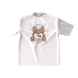 ぷりけつコーギー壁貫通Tシャツ-ビッグシルエット-