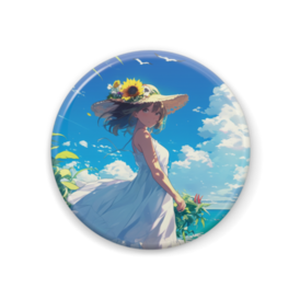 缶バッジ - 44mm青空とひまわりに包まれた、爽やかな雰囲気の少女イラストを使用した缶バッジです。 帽子に咲くひまわりと風に揺れるワンピースが、夏の一瞬を切り取ったようなデザインになっています。 カバンやポーチ、帽子などに付けてワンポイントに✨ コレクションやプレゼントにもおすすめです。 この商品はpixivFACTORYで作られた商品です。サンプル画像は完成イメージのため、実物と異なる場合があります。