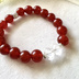 鮮やかな赤瑪瑙をベースに、 クリアクォーツのリボンパーツを組み合わせたシンプルで力強いブレスレット。 赤瑪瑙は、生命力や情熱を高め、 前に進む力や行動力を引き出す石として知られています。 迷いや不安を振り払い、「やるべきことに集中する力」をサポート。 中央のクリアクォーツは、 エネルギーを整え、持ち主の想いや願いをクリアにする役割を持ちます。 シンプルな構成ながら、 「気持ちを奮い立たせ、行動へとつなげる」力を持つ一本です。 赤メノウ 10㎜ リボンパーツ クリアクォーツ 内径 15㎝ 内径調整はプラス100円かかります。 また、デザイン変更される場合があります。 事前にメッセージよりお問い合わせください。 天然石の在庫によってはサイズアップがお受けできないこともございます。 天然石の為個体に差があります。 天然由来のクラックや内包物が見られる場合があります。 モニターなどの環境により色味などが異なる場合があります。