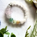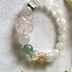 やわらかなホワイトガーデンクォーツをベースに、 愛と癒し、そして再生のエネルギーを込めたブレスレット。 中心にはローズクォーツで彫られた九尾の狐。 九尾は「守護・導き・願望成就」を象徴し、 持ち主を優しく見守りながら、望む未来へと導く存在です。 ローズクォーツは、 恋愛運を高め、自己愛や優しさを育てる“愛の石”。 グリーンストロベリークオーツは、 心の傷を癒し、前向きな感情と新しい出会いを引き寄せるといわれています。 ホワイトガーデンクォーツは、 不要なエネルギーを浄化し、心と環境を整えるサポートに。 ハニーシトリンは、 明るさと豊かさをもたらし、チャンスを引き寄せる力をプラス。 さらにブラックルチルが、 邪気払いと現実的な強さを与え、全体のバランスを引き締めます。 「癒しながら、前へ進む」 そんな流れを優しく作るブレスレットです。 ホワイトガーデンクォーツ 10㎜ グリーンストロベリークォーツ 10㎜ ブラックルチル 10㎜ ハニーシトリン 8㎜ 内径 15㎝ 内径調整はプラス100円かかります。 また、デザイン変更される場合があります。 事前にメッセージよりお問い合わせください。 天然石の在庫によってはサイズアップがお受けできないこともございます。 天然石の為個体に差があります。 天然由来のクラックや内包物が見られる場合があります。 モニターなどの環境により色味などが異なる場合があります。