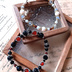 天然石、ガラスビーズ、チェコビーズ、プラパールをメインに、メタルパーツを組み合わせました。