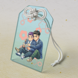アクリルお守り - 50 × 80mmこの商品はpixivFACTORYで作られた商品です。サンプル画像は完成イメージのため、実物と異なる場合があります。 pixivで公開している現代風神様シリーズをグッズにしてみました。 高校生の事代主と毘沙門天ののんびりとした日常を描いた作品をアクリルお守りにしました。 ぜひカバンなどに着けてのんびりと出来るように願掛けしてみてください。