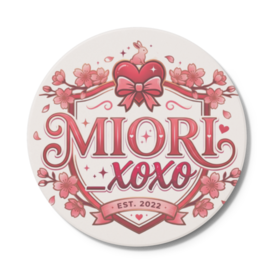 コースター - 円形やわらかなピンクに包まれた、みおりのロゴコースター。 ハートやリボン、桜のモチーフをあしらい、甘さの中に上品さを添えたデザインに仕上げました。 グラスの下にそっと敷くだけで、いつもの時間が少し特別に。 吸水性に優れた白雲石素材を使用しているため、結露もしっかり受け止めてくれます。 お部屋のアクセントやディスプレイとしてもお楽しみいただけます。 さりげなく“好き”を置いておきたい方へ。