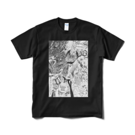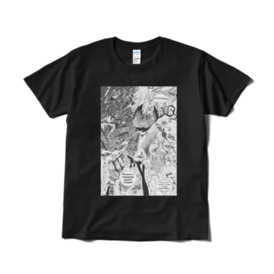 Tシャツ(短納期) - XL - ブラックアメコミっぽい感じのイラストのシンプルな短納期Tシャツです。 白と黒があります。こちらは黒になります。 ※後日ほかにフルグラフィックTシャツ、他のカラーの両面Tシャツなど出る予定があります。オーダーメイドだから焦らなくてもいいのよ( 'ㅅ') この商品はpixivFACTORYで作られた商品です。サンプル画像は完成イメージのため、実物と異なる場合があります。