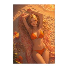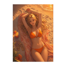 ポスター - B2この商品はpixivFACTORYで作られた商品です。サンプル画像は完成イメージのため、実物と異なる場合があります。 夕焼けに染まるビーチで過ごす、穏やかな夏のひととき。 やわらかな光と温かい色彩が、幻想的で優しい空気感を演出します。 落ち着いた雰囲気と華やかさを兼ね備えた、印象的なポスター作品。 お部屋に温かみを加えたい方におすすめです。