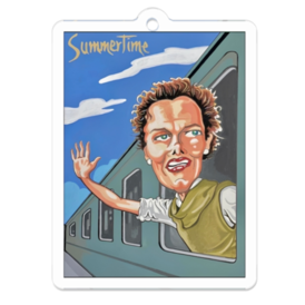 アクリルキーホルダー - 50 x 50 (mm)『旅 情』(1955) 主演/キャサリン・ヘプバーン ロッサノ・ブラッツィ 夏のバカンスにベネチアを訪れた中年のアメリカ人女性。偶然知り合った骨董店の店主への不器用なまでに揺れ動く想い。中年男女の許されぬ恋路を名匠デビッド・リーン監督が詩情たっぷりに描いた美しい秀作。 主人公の女性は様々な想いを胸にしまってベネチアを離れます。後ろ髪を引かれながら汽車は滑り出す。彼がプラットホームに走り来る。手渡そうとする想い出の花は、車窓からの手にはついに届かない。恋の甘さと別れの苦さを乗せて、新たな人生の発車ベルが、イタリアの空の青に沁みていく。