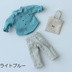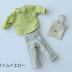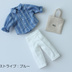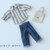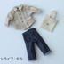 オビツ11サイズのシャツ、ワイドパンツ、トートバッグの3点セットです。 【シャツ】 袖まくりデザインの長袖シャツです。 シルエットに抜け感を出すため、あえて袖まわりにシワをよせて接着剤で固定しています。 背中には1箇所タックを入れました。 無地シャツは透け感のある軽やかな質感のローン生地、ストライプシャツはナチュラルで涼しげな綿麻生地を使用しています。前は閉じた状態で接着剤で留めているので頭部パーツを外して被せて着せてください。 【ワイドパンツ】 ウエストにタックの入ったワイドパンツです。裾はロールアップして接着剤で固定しています。長め丈でゆるっとラフ感がありつつも、タックの縦ラインでカジュアルに寄りすぎないようなデザインにしてみました。 素材についてはストライプは綿麻、ホワイトのパンツは薄手のタイプライター生地、極薄デニムが2カラーになります。 ※ウエストはゴムや留め具等なし、オビツ11ボディでタイトめなサイズ感です。 【トートバッグ】 シンプルなワンポイントロゴ入りのトートバッグです。マチなしでスマートに持たせやすく合わせやすく、を目指しました。 ※ロゴプリント部分はデリケートなため水濡れや摩擦にご注意ください。 Xに着用画像がございますのでご参考ください。 ●繊細なつくりのため、強くひっぱる、ねじるなど過度な力を加えますと破損の危険性がございます。お取扱いには十分ご注意頂きますようお願い致します。 ●長期間の着用は色移りの可能性がございますのでご注意ください。 ●画面設定により実物の色と異なる場合があります。