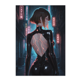 ポスター - B2この商品はpixivFACTORYで作られた商品です。サンプル画像は完成イメージのため、実物と異なる場合があります。 ネオンに照らされた裏路地で振り返る女性を描いたサイバーパンクポスターです。 背中のデザインや発光ラインが印象的で、静かな緊張感と未来的な美しさを感じさせます。 幻想的で奥行きのある世界観が魅力の一枚です。