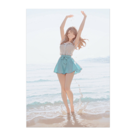 ポスター - B2この商品はpixivFACTORYで作られた商品です。サンプル画像は完成イメージのため、実物と異なる場合があります。 波打ち際で無邪気に水と戯れる、開放感あふれるワンシーン。 動きのあるポーズと水しぶきが、夏の爽やかさと楽しさを感じさせます。 軽やかな空気感と明るい表情が印象的な一枚です。 空間に活気と明るさを加えたい方におすすめのポスターです。