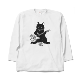 ロングスリーブTシャツ - XL - ホワイトロックが大好き!エレキギターを離さない黒猫くんです♪