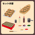 ・たこ焼き ・爪楊枝 ・トレー2種類(船皿、発砲トレー) ・たこ焼きメーカー ・具材皿(タコ、ネギ、紅ショウガ、鰹節、揚げ玉) ・青のり容器 ・粉つぎ ・調理用ピック ・ボトル(マヨネーズ、ソース)
