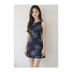 静かな美しさ — ネイビーフラワーワンピの上品ポートレート