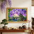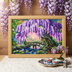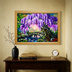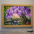 【一点物】藤の季節の風景画「紫烟の雫、静寂の庭」油彩画 (額装込)母の日ギフト