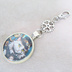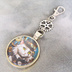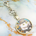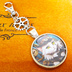 シルバーカラー カボションペンダント キーホルダー スチームパンク シルクハットの毛長白猫 金具変更可