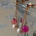 コットンパールとキャンディジェイドのピアス(ベリーピンク)