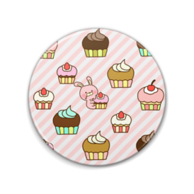 缶バッジ - 76mmうさぎさん×カップケーキの缶バッジです。 バッグやポーチ、キャップなど、いろんなところにつけて、あまくてかわいいどうぶつたちとお出かけを楽しんでね! ※この商品はpixivFACTORYで作られた商品です。サンプル画像は完成イメージのため、実物と異なる場合があります。