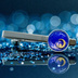 【成人式やプレゼントに】夜空に浮かぶ三日月のネクタイピン ロイヤルブルー×オーロラ シルバー金具