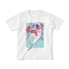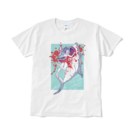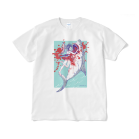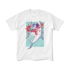 Tシャツ(短納期) - XL - ホワイトサメと楽しそうにする女の子です。夏のお供にどうぞ。 この商品はpixivFACTORYで作られた商品です。サンプル画像は完成イメージのため、実物と異なる場合があります。