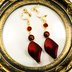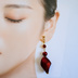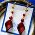 秋カラー*フレームストーンとスワロフスキーパールとベルベット感のある個性派赤色ピアス