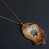 ***** 迷い込んだ森の中。 火事でもあったのだろうか。 古びた洋館がぽつりと立っていた。 恐る恐るドアを開けて、探検する。 うっすらとベールのように明かりが差し込んだ書斎を歩くと、 焦げて散りばめられた本のページが広がっていた。 まだ読める物語のカケラを集めて、アクセサリーを作ることにした。 ***** こちらは燃えた洋書のカケラの切り絵ネックレスです。 あったはずの物語が炎に炙られることで切り抜いたところから焦げてしまい、 あっけなく消えて無くなります。 でもそこには確かに存在した軌跡がある。 そんな儚さを感じて頂けたら嬉しいです。 【大きさ】 ペンダントトップ H40mm×W23mm チェーンの長さは基本は40cmです。 男性や首周りがどうしても合わない方は、メッセージを下されば長いものと交換致します。 その際は、発送日数がプラスでかかってしまう可能性がありますのでご了承下さいませ。 【注意事項】 ・紙の薄さを活かすために、薄い仕上がりとなっております。 取り扱いは優しく接してあげて下さい。 ・掲載の画像は、撮影の都合やお使いのモニターにより実物と異なることがございます。