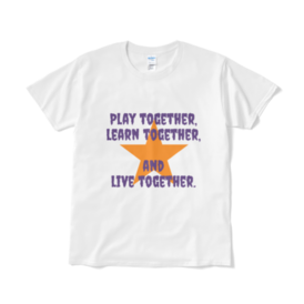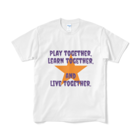 Tシャツ(短納期) - XL - ホワイト『共に遊び、共に学び、共に生きる』 ハロウィンカラーのメッセージTシャツです。 この商品はpixivFACTORYで作られた商品です。サンプル画像は完成イメージのため、実物と異なる場合があります。
