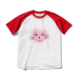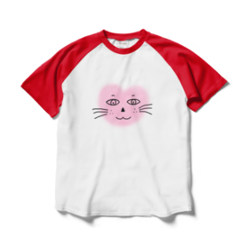 ラグランTシャツ - XL - ホワイト×レッドまるーいハートねこのラグランTシャツ(ホワイト・白×レッド・赤)です。 この商品はpixivFACTORYで作られた商品です。サンプル画像は完成イメージのため、実物と異なる場合があります。