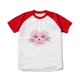 まるーいハートねこのラグランTシャツ ホワイト・白×レッド・赤