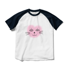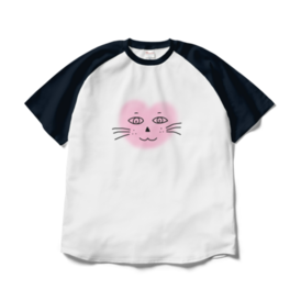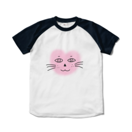 まるーいハートねこのラグランTシャツ ホワイト・白×ネイビー・紺色