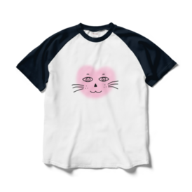 ラグランTシャツ - XL - ホワイト×ネイビーまるーいハートねこのラグランTシャツ(ホワイト・白×ネイビー・紺色)です。 この商品はpixivFACTORYで作られた商品です。サンプル画像は完成イメージのため、実物と異なる場合があります。