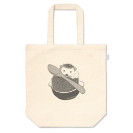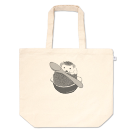 トートバッグ - L - プリント面積中小さなお皿にすぽっと入って、スプーンを抱えたハリネズミさんをデザインし、モノクロでおしゃれな雰囲気にしてみました。 「一緒にごはん食べようよ!」という声が聞こえてきそうなハリネズミさんをお供に、ランチタイムやティータイムを過ごしてみてはいかがですか? ※この商品はpixivFACTORYで作られた商品です。サンプル画像は完成イメージのため、実物と異なる場合があります。